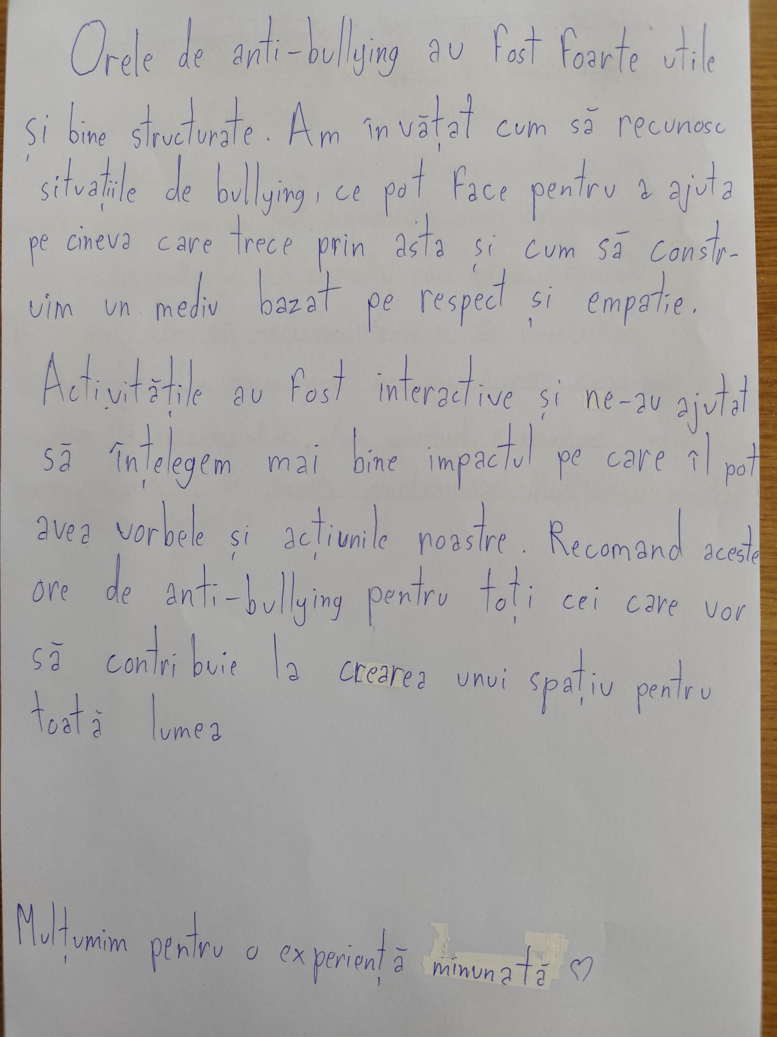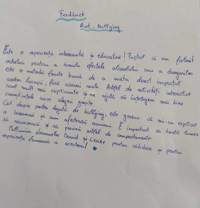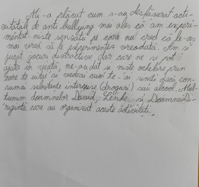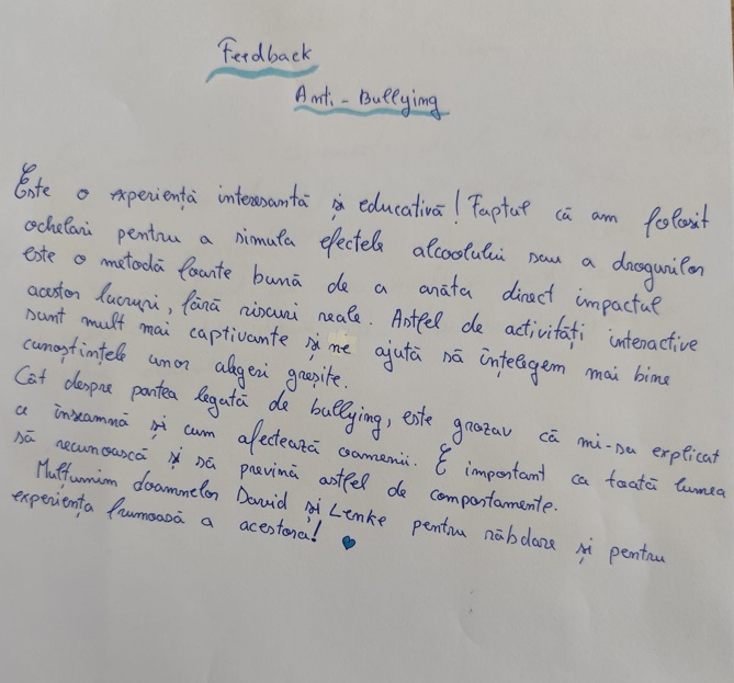Cele mai sincere aprecieri vin chiar de la ei. Descoperă în imagini cum atelierele noastre de prevenție Bullying & Dependențe le-au deschis ochii, le-au dat curaj și i-au învățat să spună “STOP!”. Poveștile lor sunt dovada vie că Educația te Salvează!